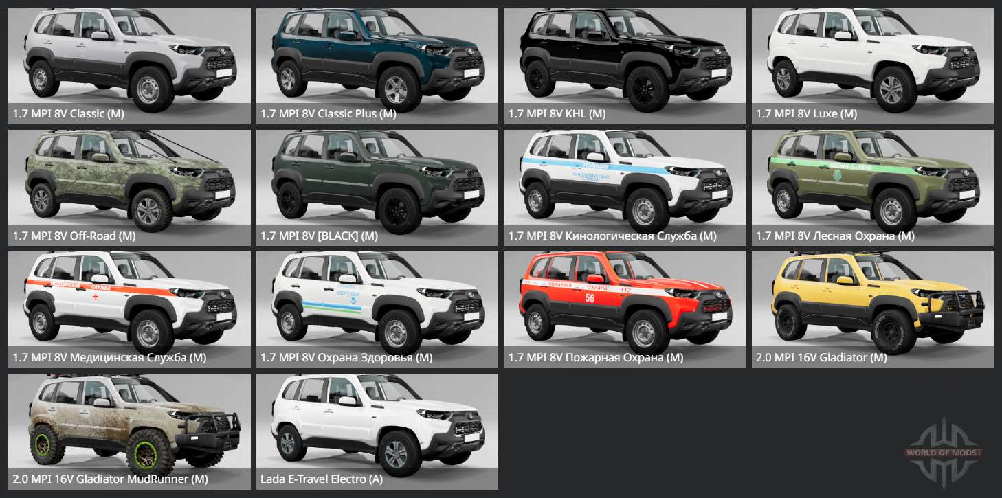 You can download the mod for Lada Niva Travel Lux (212300-80) 2020 for BeamNG.drive using the links located below on the page.