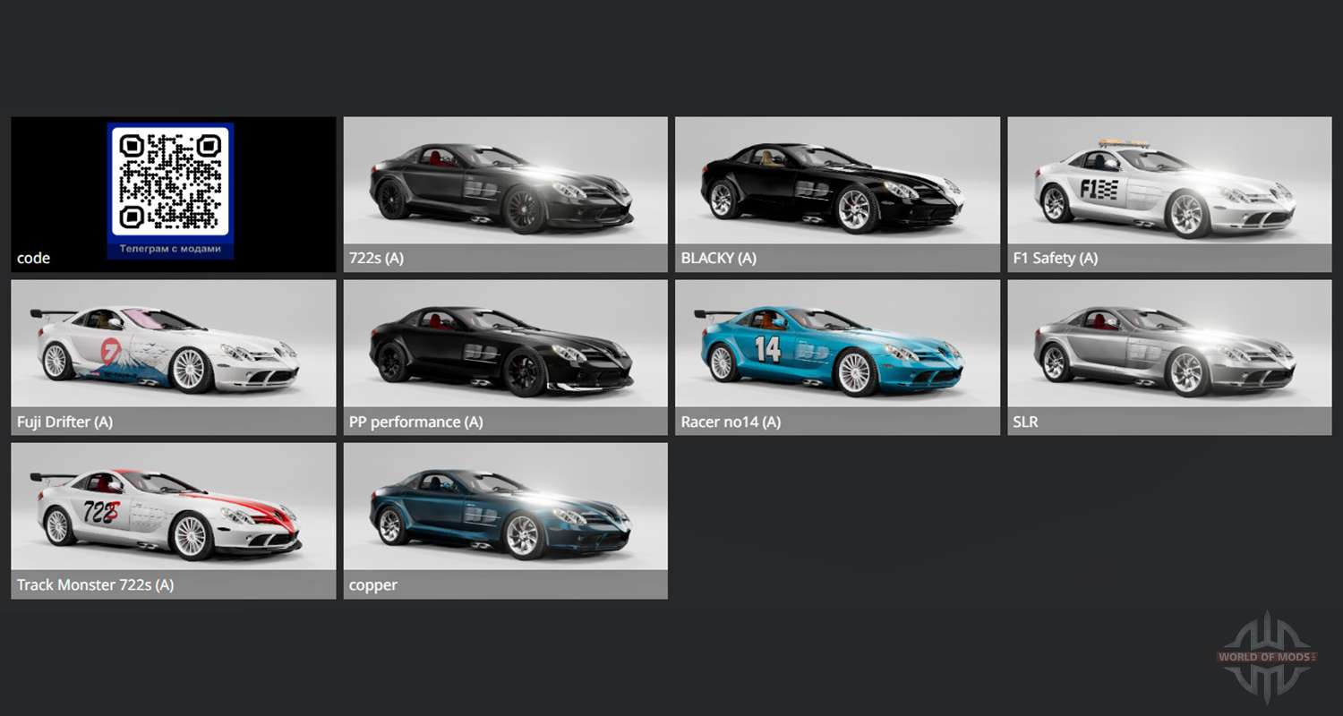 You can download the mod for Mercedes-Benz SLR McLaren (C199) 2006 for BeamNG.drive using the links located below on the page.
